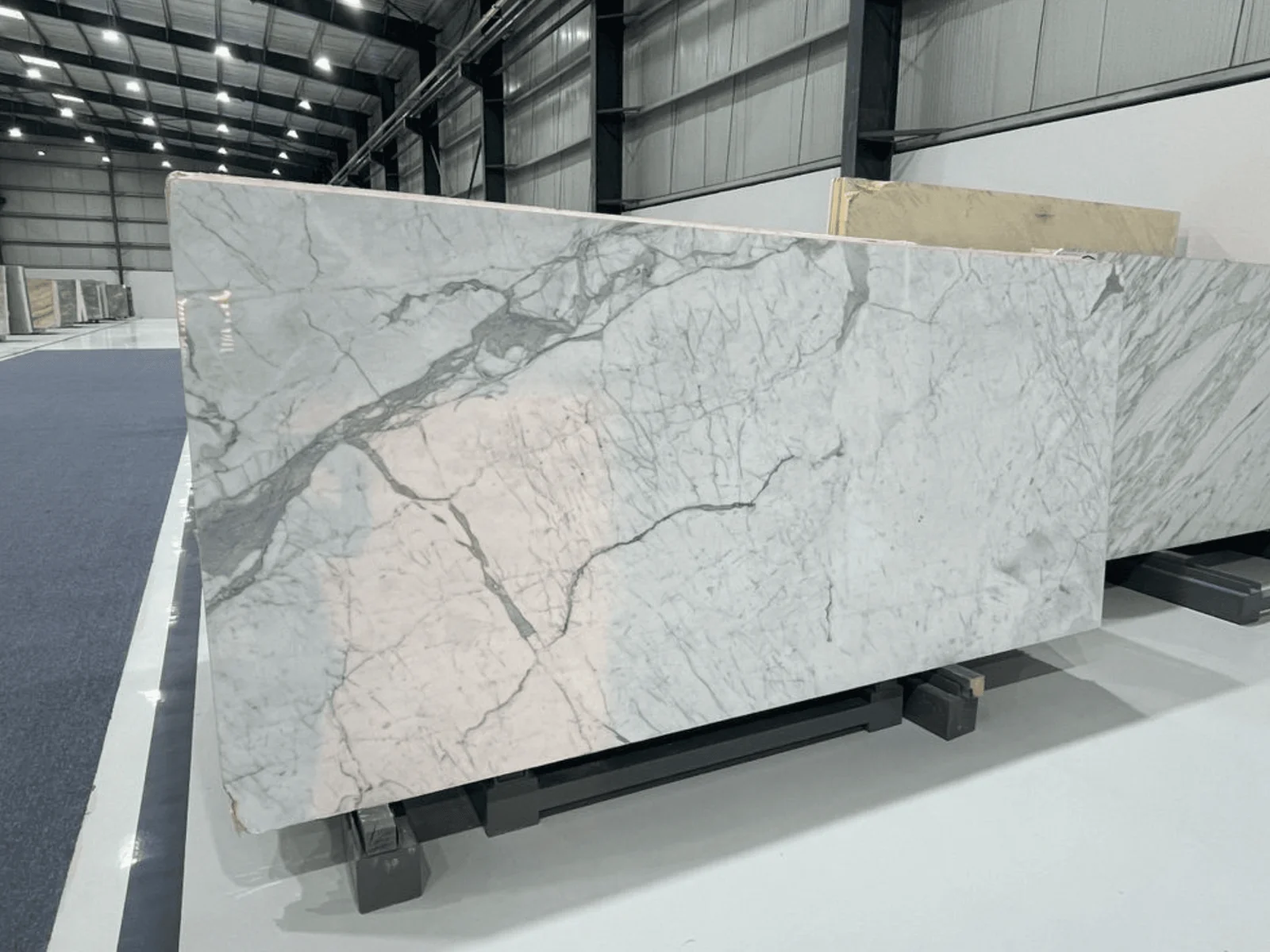 Buy premium Statuario Marble β elegant Italian white marble with bold grey veining. Ideal for floors, walls, bathrooms & countertops. Available in polished and honed finishes.